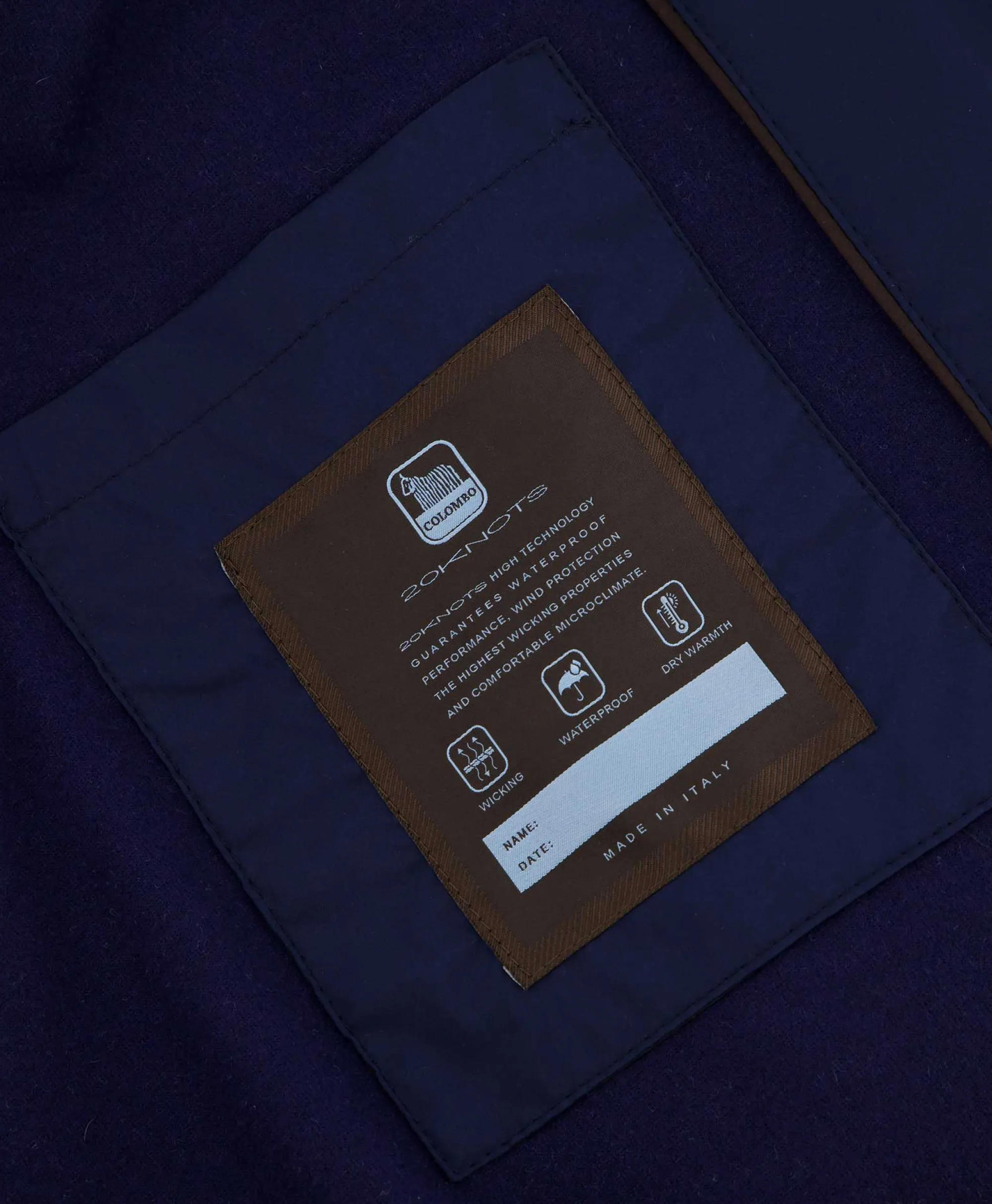 Waterdichte Jas Van Het Merk Colombo. Voorzien Van Een Suède Binnenkraag, Een Subtiele Reverskraag, Twee Steekzakken En Een Rits- En Knoopsluiting. De Jas Is Licht Van Gewicht En Heeft Een Ademend Vermogen. Binnenstof Is Van 70% Kasjmier En 30% Zijde.