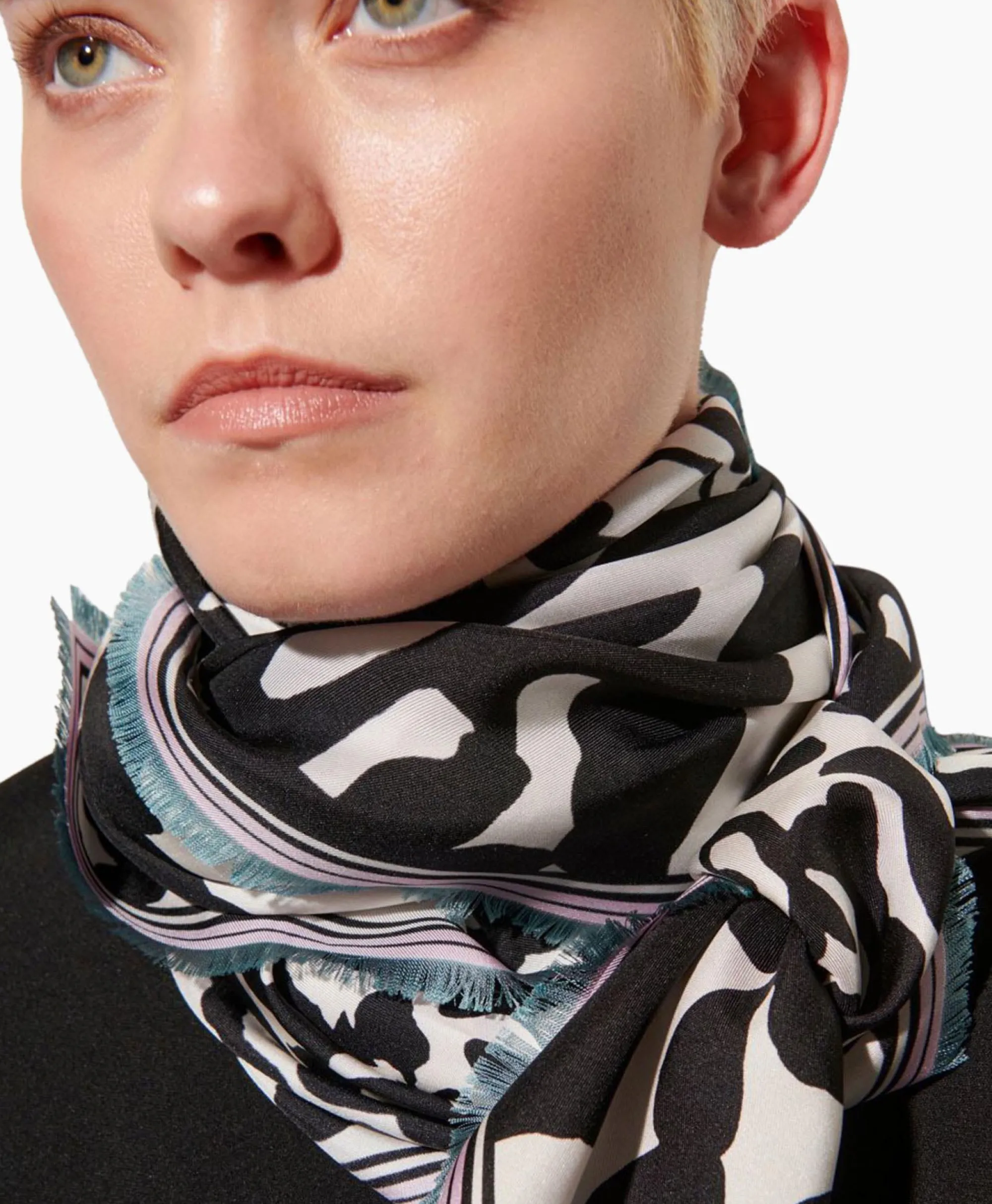 Grote Driehoekige Sjaal Met Fijne Franje Langs De Onderrand. De Pure Zijden Stof Heeft Een Contrasterende Print En Gestreepte Rand.&Nbsp;Afmetingen: Ca. 102X102 Cm.