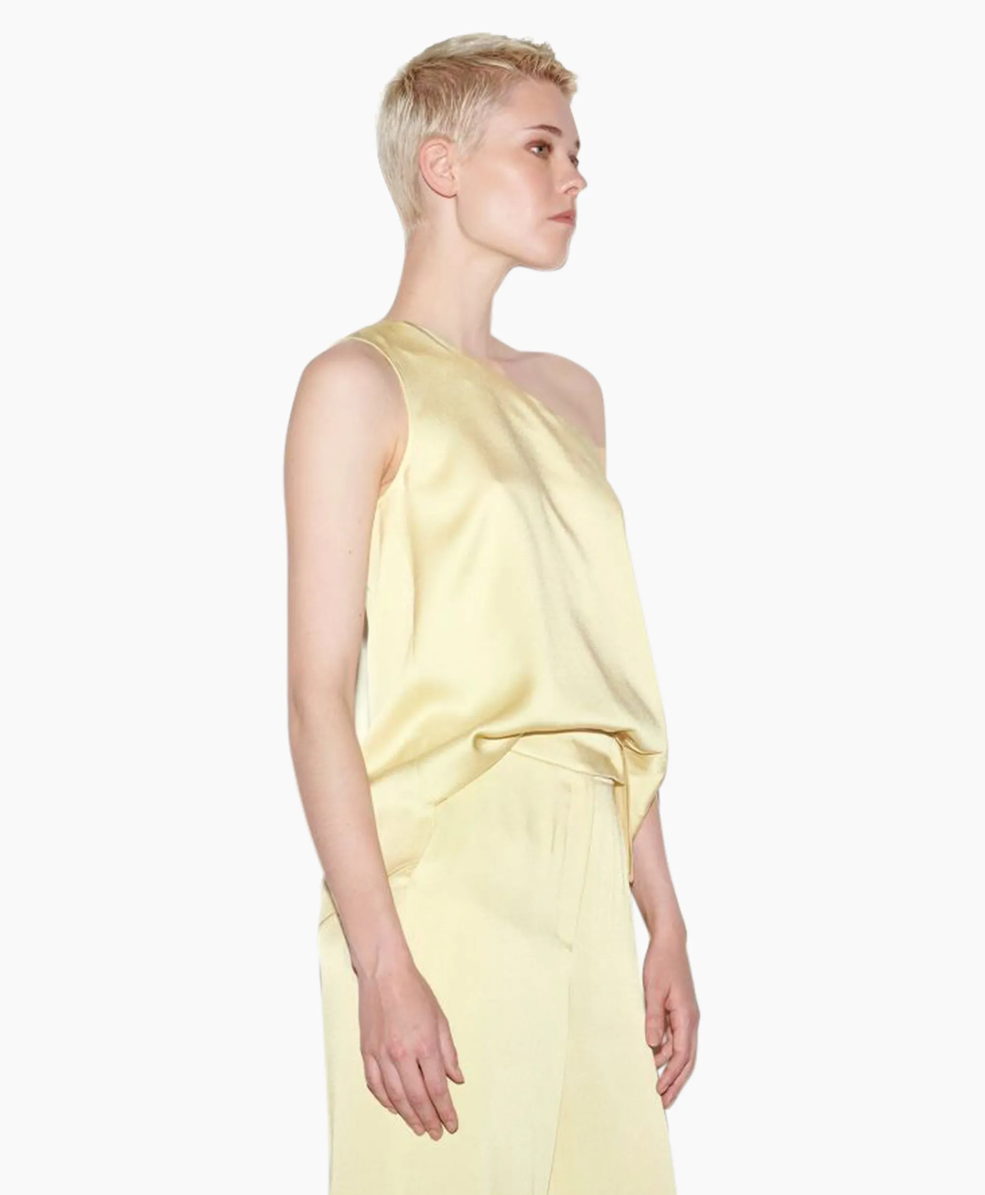 Casual Top In Een Moderne Off-Shoulder Stijl Met Split Aan De Zijkant. De Top Is Gemaakt Van Glanzend Satijn. Het Model Is 178 Cm Lang En Draagt Maat 36 (Uk 10). Materiaal: 71% Acetaat, 29% Viscose.