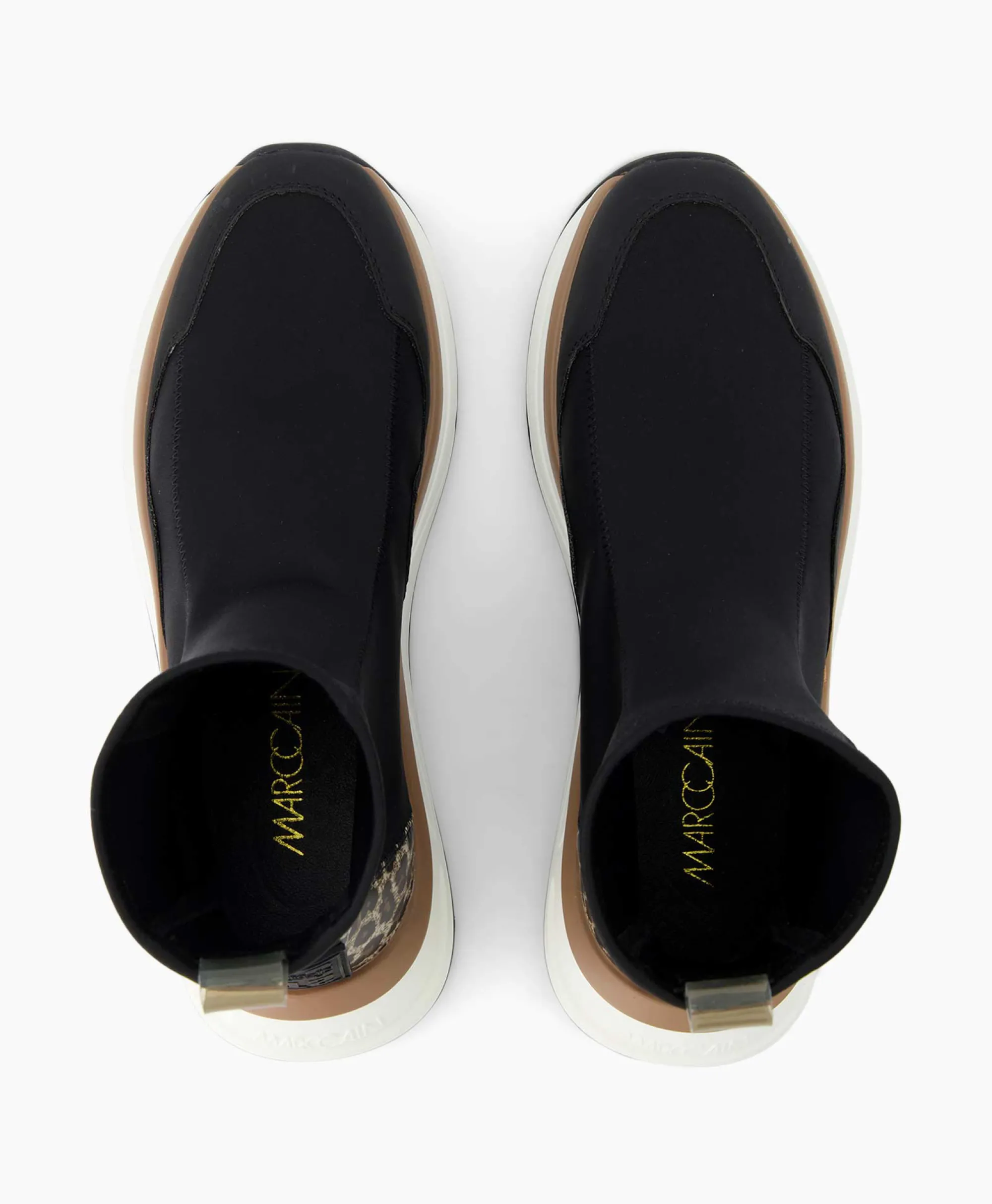 Mid-Cuts Met Luipaardhiel In Een Smal Design, Afgewerkt Met Elastische Details En Uitlopende Hak. De Hiel En Het Lusje Van Ripslint Zijn Verfraaid Met Een Mc-Belettering. Hakhoogte: 35 Mm. Materiaal: 100% Elastaan.