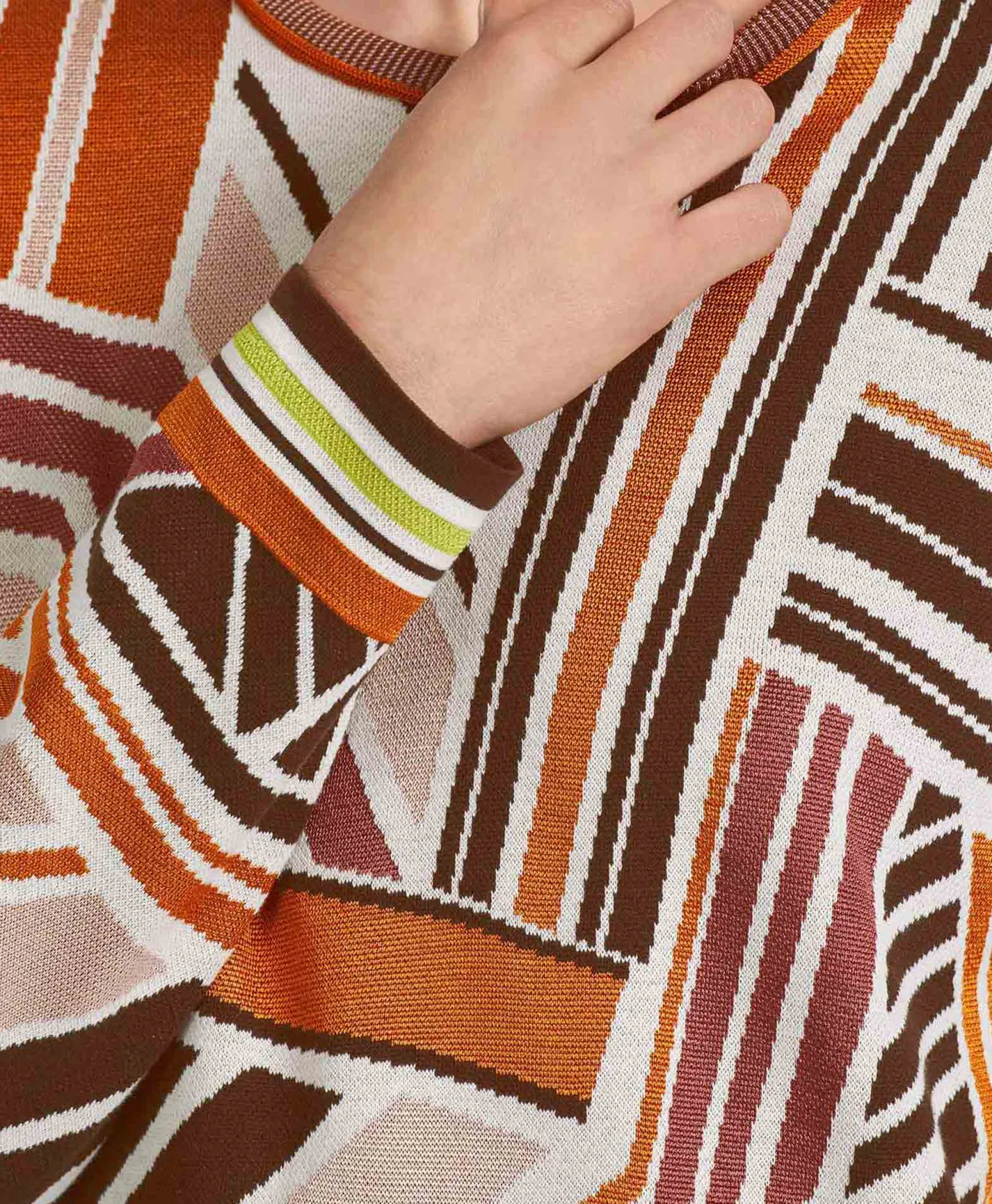 Kenmerkend Voor Deze Trui Is De Materialenmix In Een Speels Streepdessin. Hij Heeft Een Recht Silhouet Met Zijsplitten En Een Ronde Hals. De Trui Wordt Op De Locatie In Duitsland Gebreid En Daar Ook Veredeld. De Afzonderlijke Delen Worden Verder Verwerkt In Europese Partnerbedrijven. Het Model Is Dus ʽKnitted In Germanyʼ.