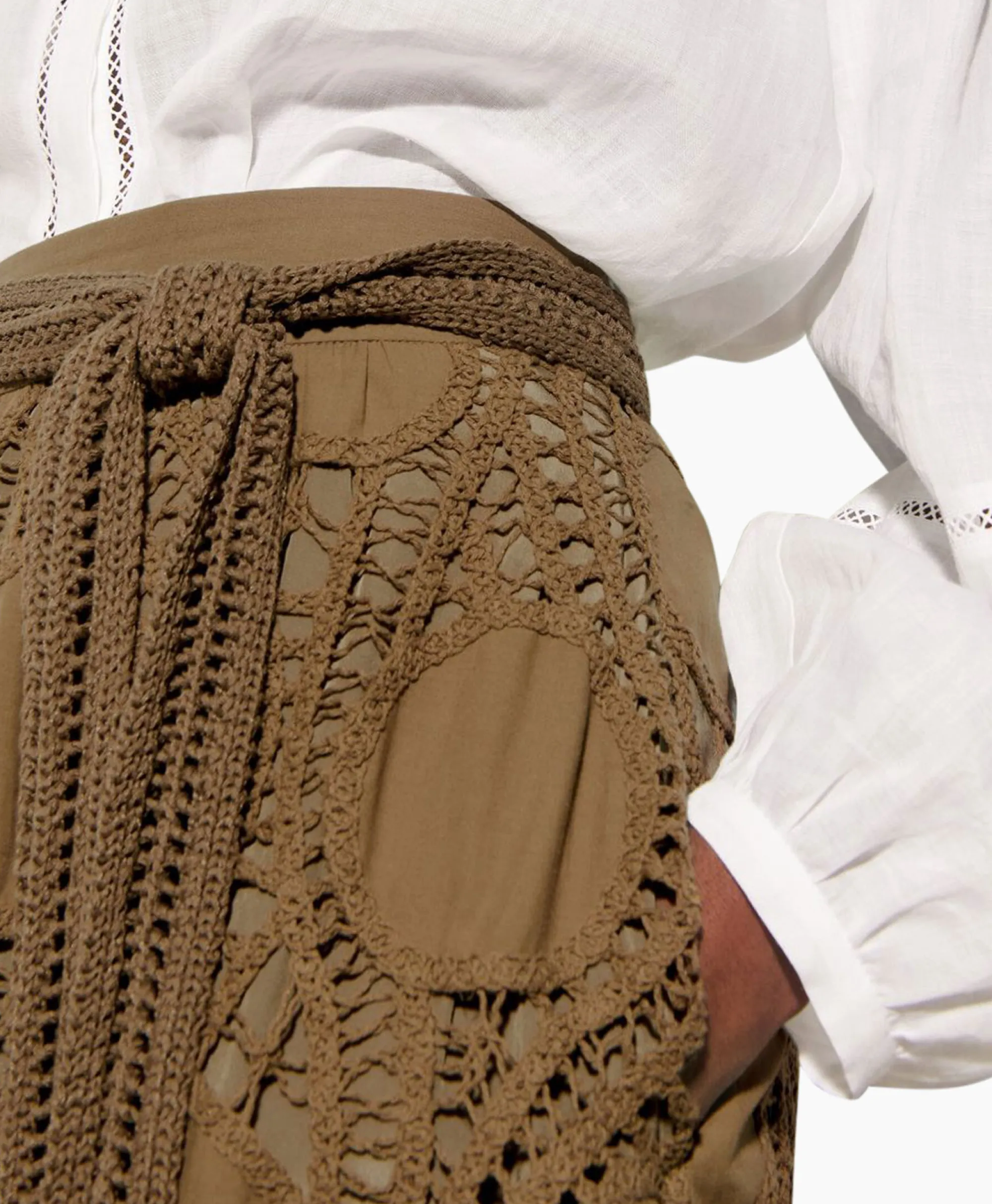 Een Licht Uitlopende, Lange Rok Van Zuiver Katoen Met Ingewikkelde Gehaakte Details. Twee Zijzakken Maken Het Ontwerp Compleet.Ons Model Is 178 Cm Lang En Draagt Maat 36.&Nbsp;
